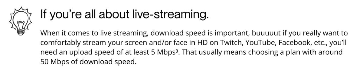 Most of us will be just fine with an average speed plan. Fast enough to handle multiple devices at the same time, whether it’s one person streaming 5 different shows on 5 different devices or four or five people all on their own device. Most oxio customers use an average speed plan and, well, so far so good. Think this might be the speed for you? Well: