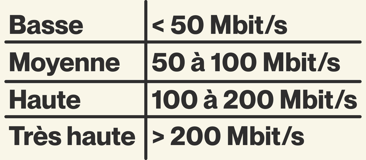 Vitesses pour plusieurs personnes en même temps. (50 à 100 Mbit/s)